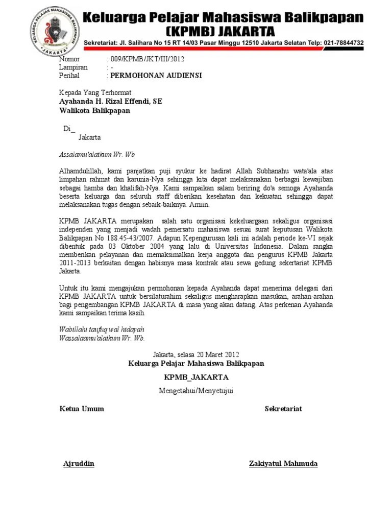 Maka kami selaku panitia pelaksana ingin mengajukan permohonan audiensi kepada bapak gubernur, untuk itu kami mengharapkan kerjasama yang baik . Contoh surat audiensi ke bupati informasi seputar dunia. Pengumuman seleksi penerimaan calon tenaga . Kepada yth, kapolda sulawesi utara bpk. Contoh surat undangan silaturahmi acara kegiatan osis siswa.